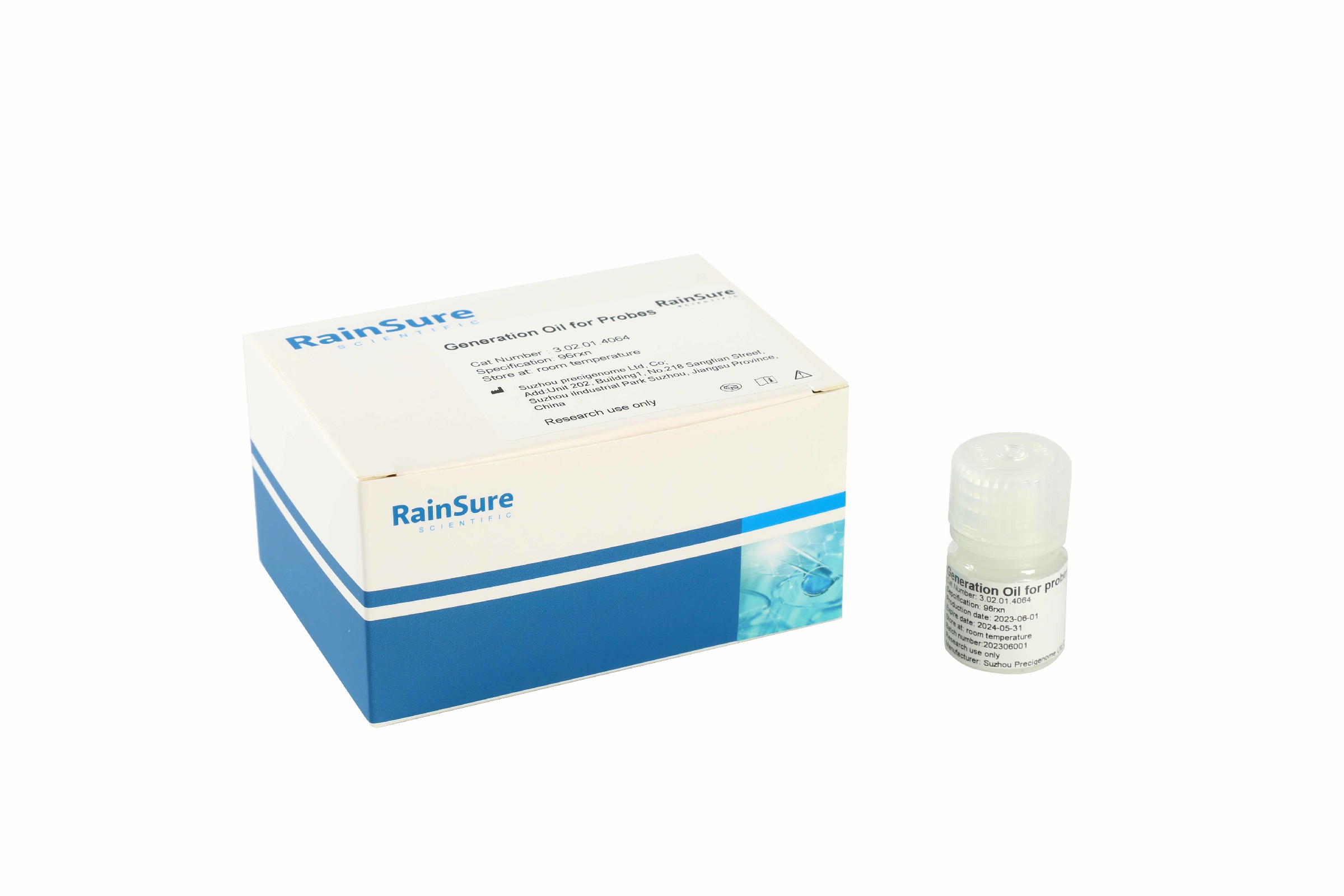 O óleo de geração de gotículas é um fluido especializado à base de óleo que é usado para criar e estabilizar as gotículas no DPCR. O óleo é imiscível com a mistura de reação de PCR, formando uma fase distinta que envolve e encapsula as gotículas da mistura de reação. Essa barreira do petróleo ajuda a isolar e compartimentar cada reação de PCR, impedindo a contaminação cruzada e garantindo quantificação precisa dos ácidos nucleicos alvo.