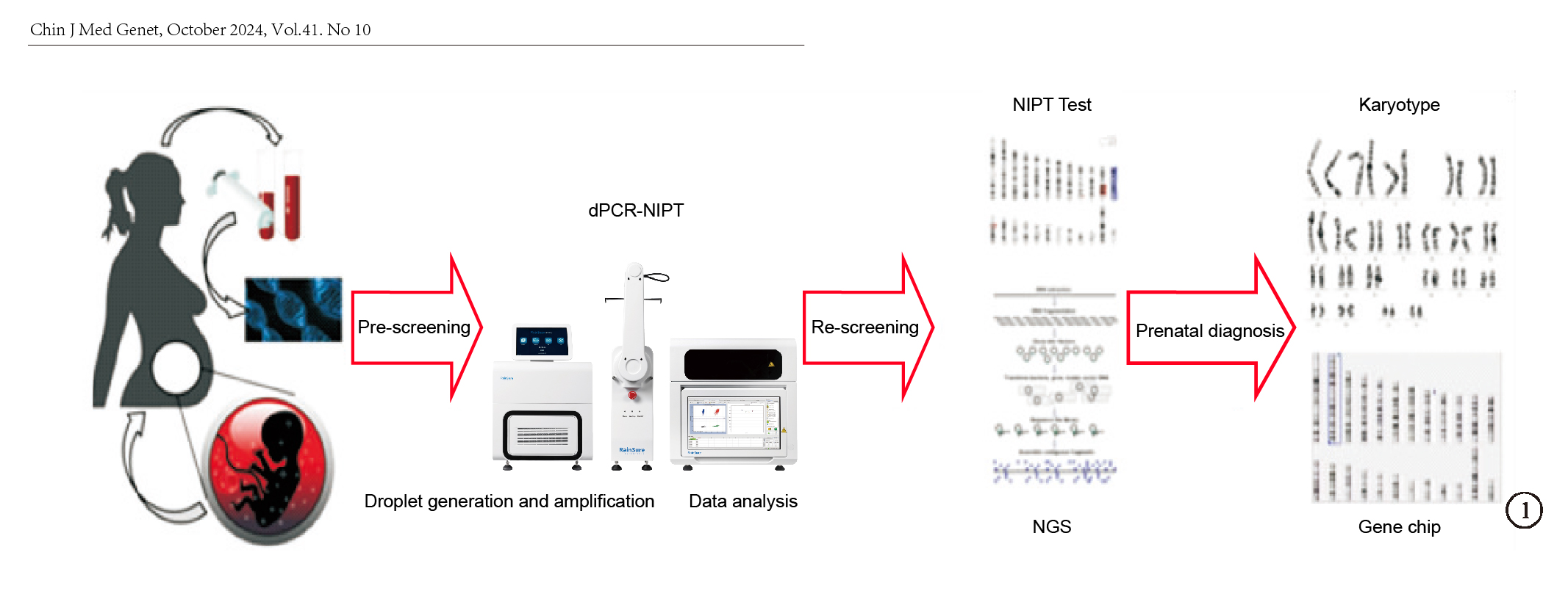 Nesse estágio, testes pré-natais não invasivos com base no NGS (sequenciamento da próxima geração) foram usados na triagem clínica para trissomia fetal 21, trissomia 18 e trissomia 13 síndromes e demonstrou alta sensibilidade, especificidade e taxa de detecção em gravidezes de alto risco. No entanto, o NGS-NIPT é afetado por uma variedade de fatores originários do feto, da mãe, do processo de sequenciamento e da análise de dados, o que pode resultar em resultados falsos positivos ou falsos negativos. Além disso, o custo dos testes NGS-NIPT é caro, dificultando a implementação rápida e eficaz em larga escala.